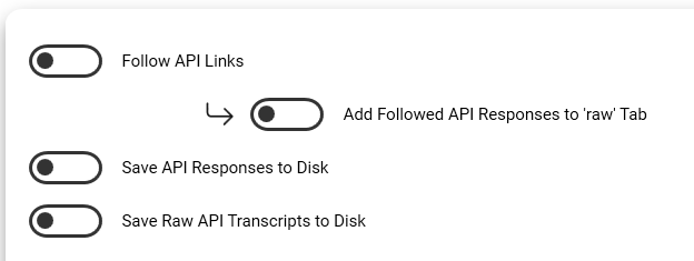 If we zoom in on the additional settings, we notice that API Studio supports automatic following of paged REST API call results. In addition, the results can be automatically saved to the file system.