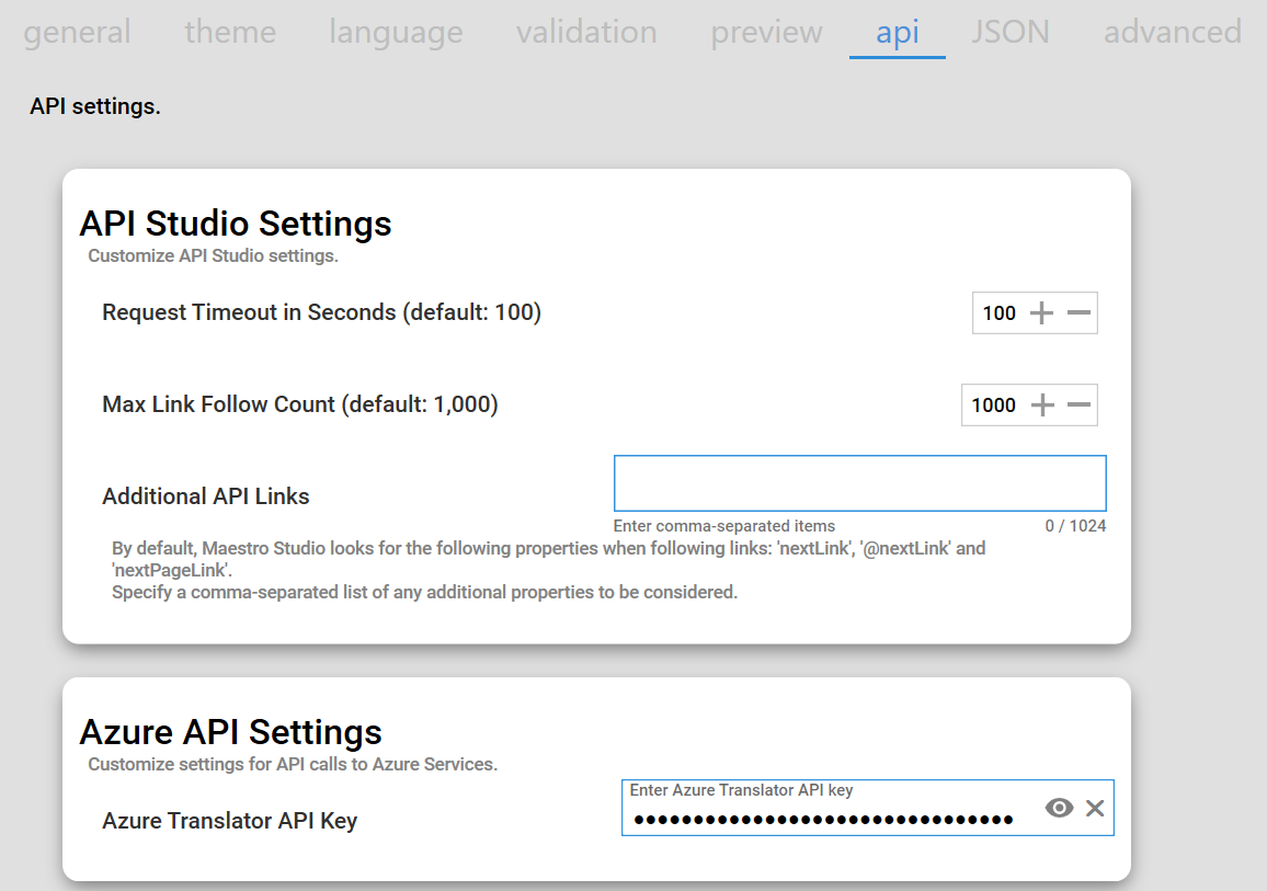 API Studio Settings