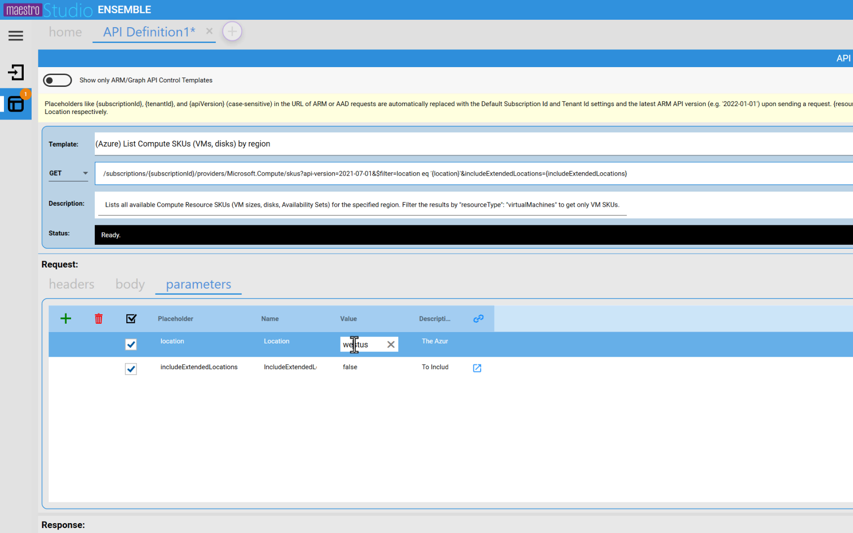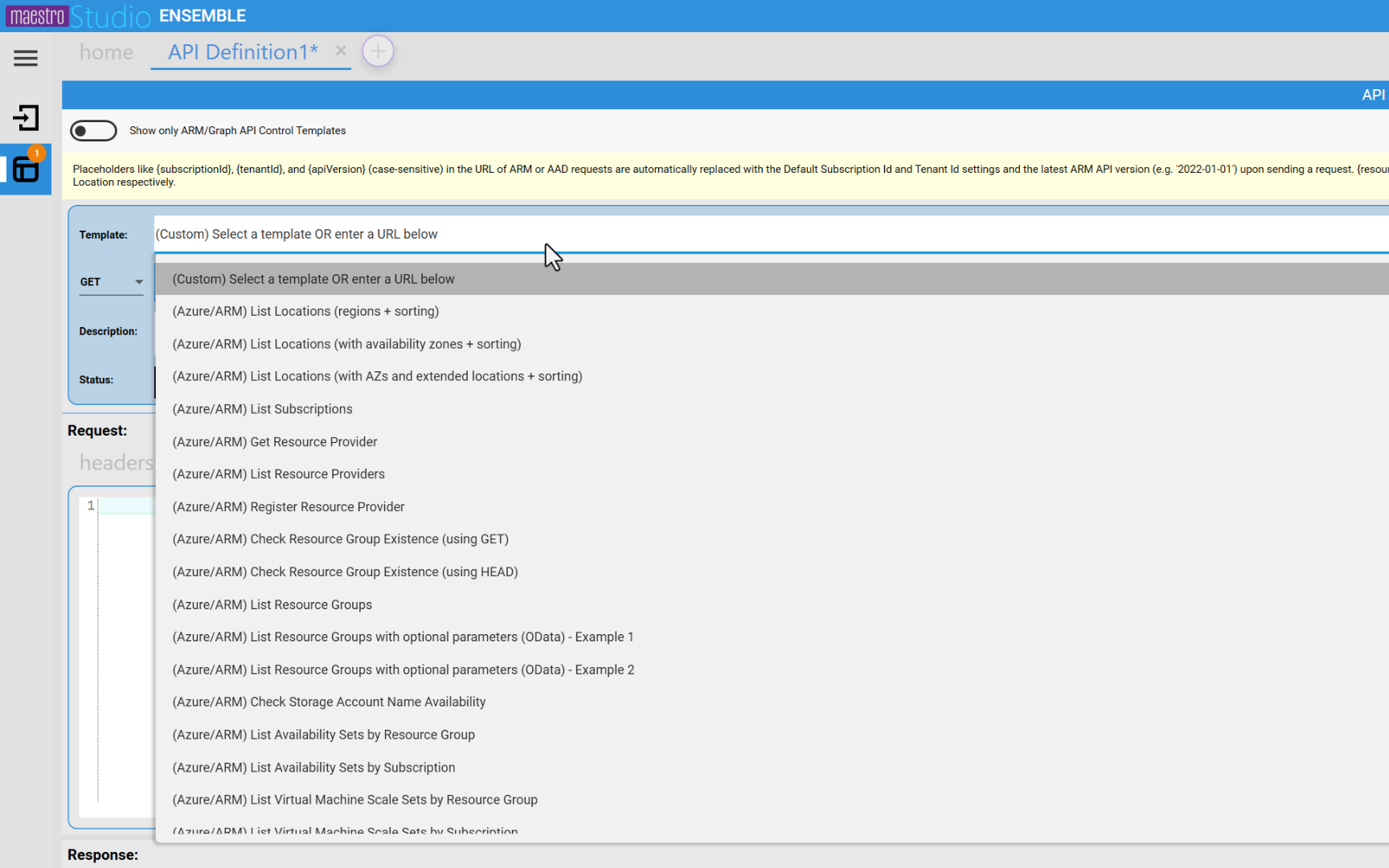 In this post, you will learn how to use API Studio, the powerful REST API composition and testing tool built into Maestro Studio ENSEMBLE and SOLO. You will also learn how API Studio facilitates and simplifies the use of ARM and MS Graph APIs in createUiDefinition.json by enabling the use of drag-and-drop to place pre-configured ArmApiControl and GraphApiControl widgets in your UI definition to represent the APIs you've tested and verified in API Studio.