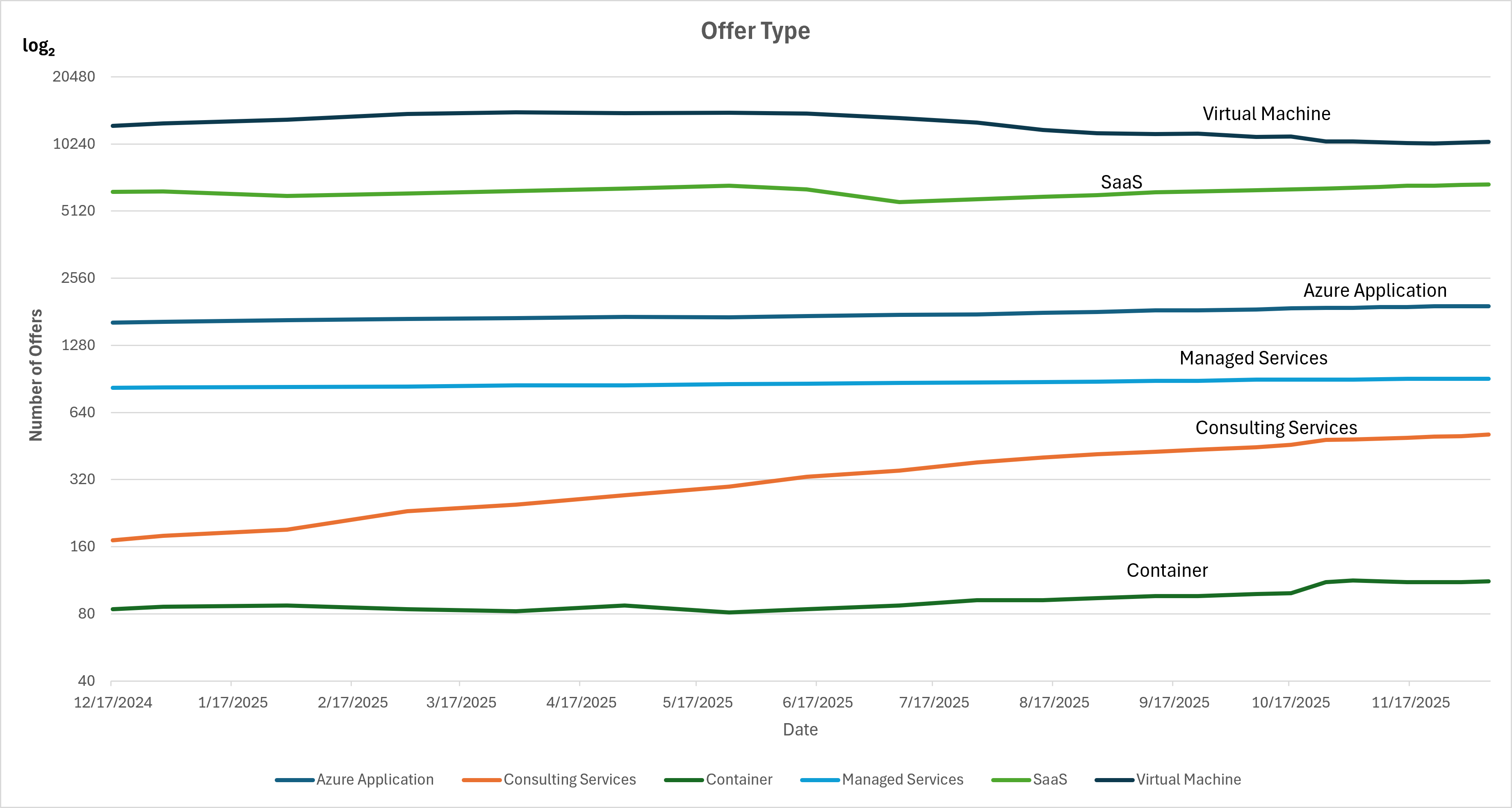 Offer Types Over Time (log² graph)