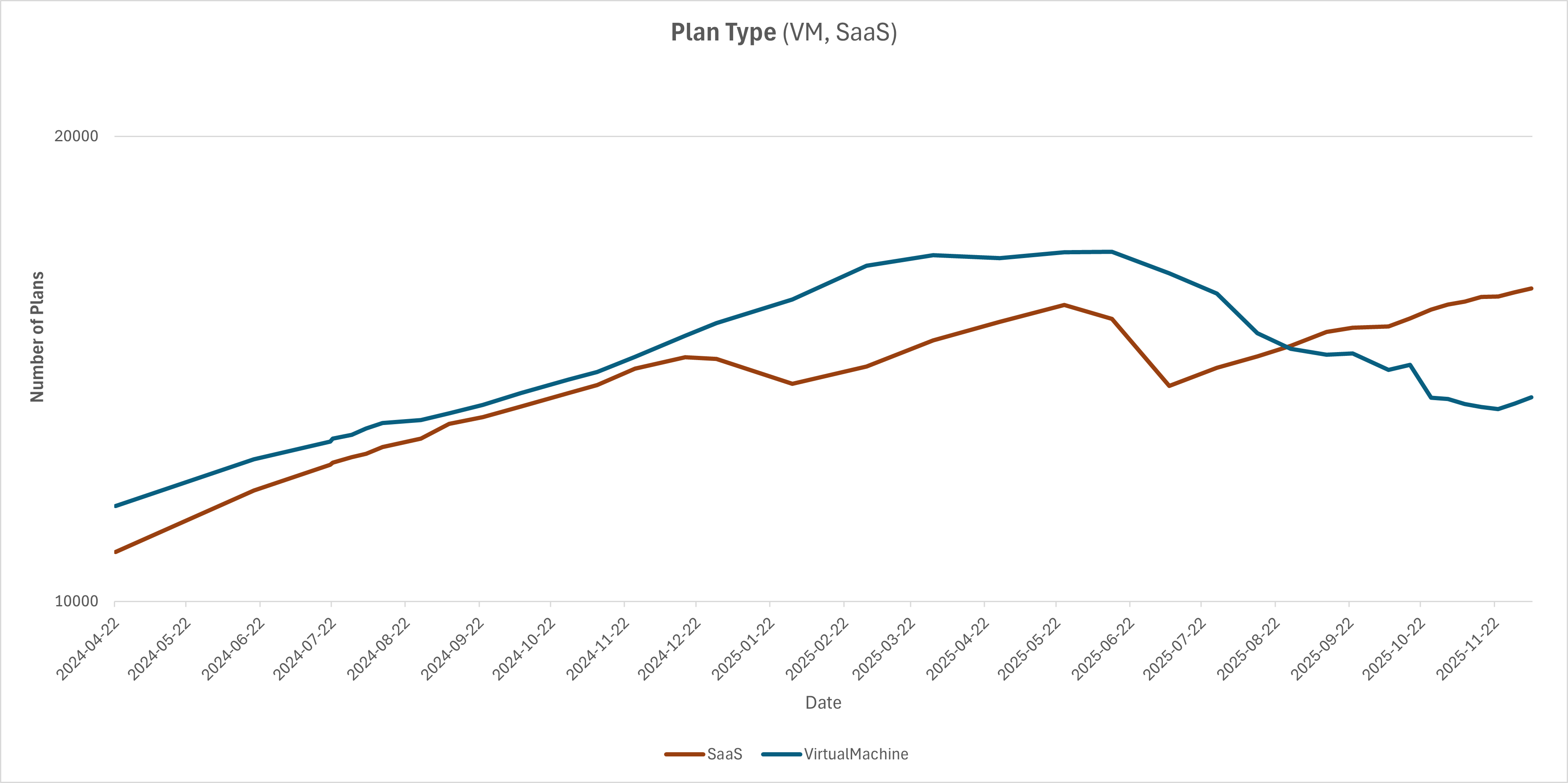 Virtual Machine vs. SaaS Plan Type Growth