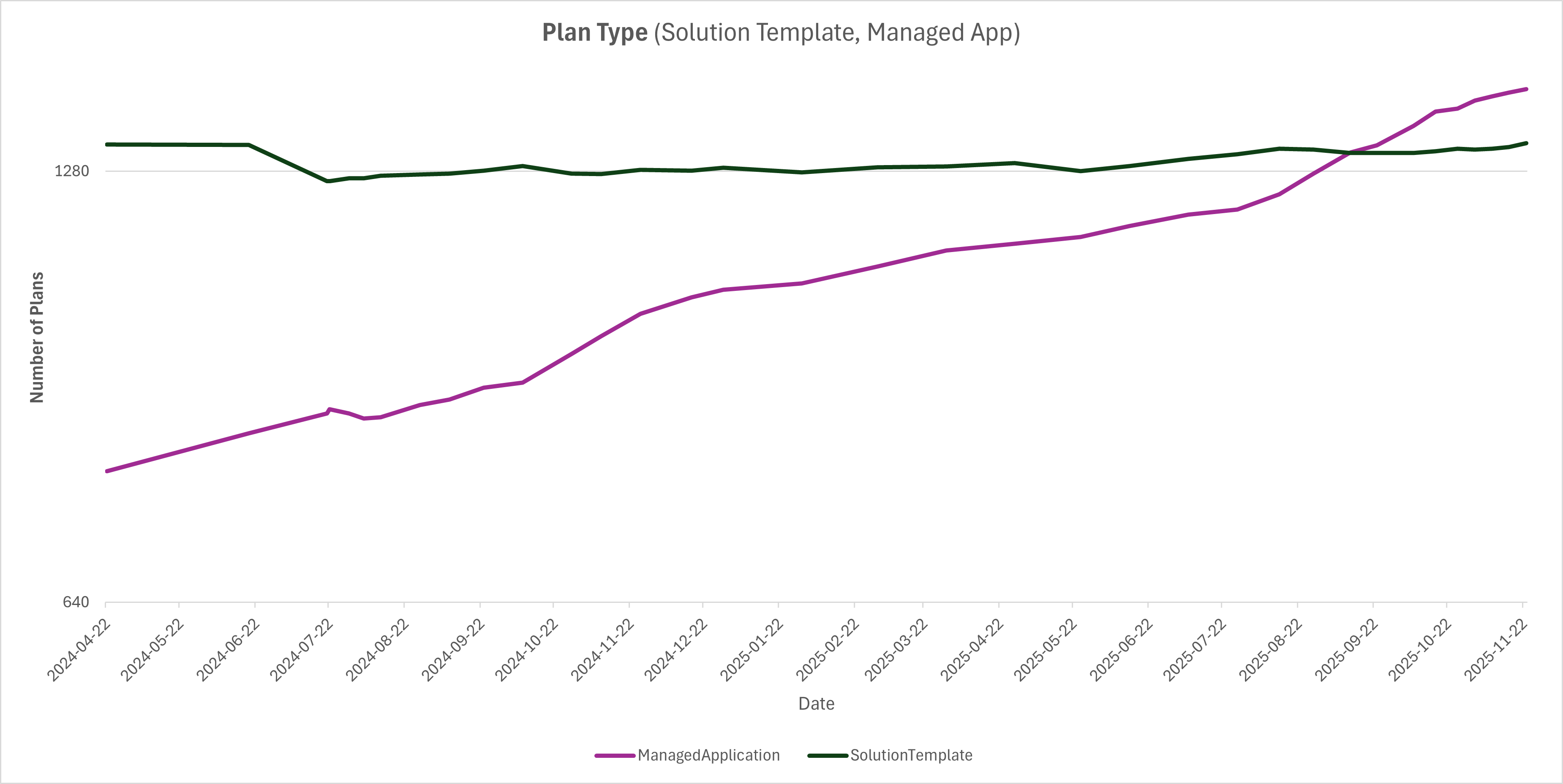 Another interesting observation is within the Azure Application offer type, where the Managed Application plan type took over from the Solution Template plan type. This is mainly due to the important capabilities that Managed Apps provide. They're monetizable, and they make it easy to support and maintain deployed solutions.