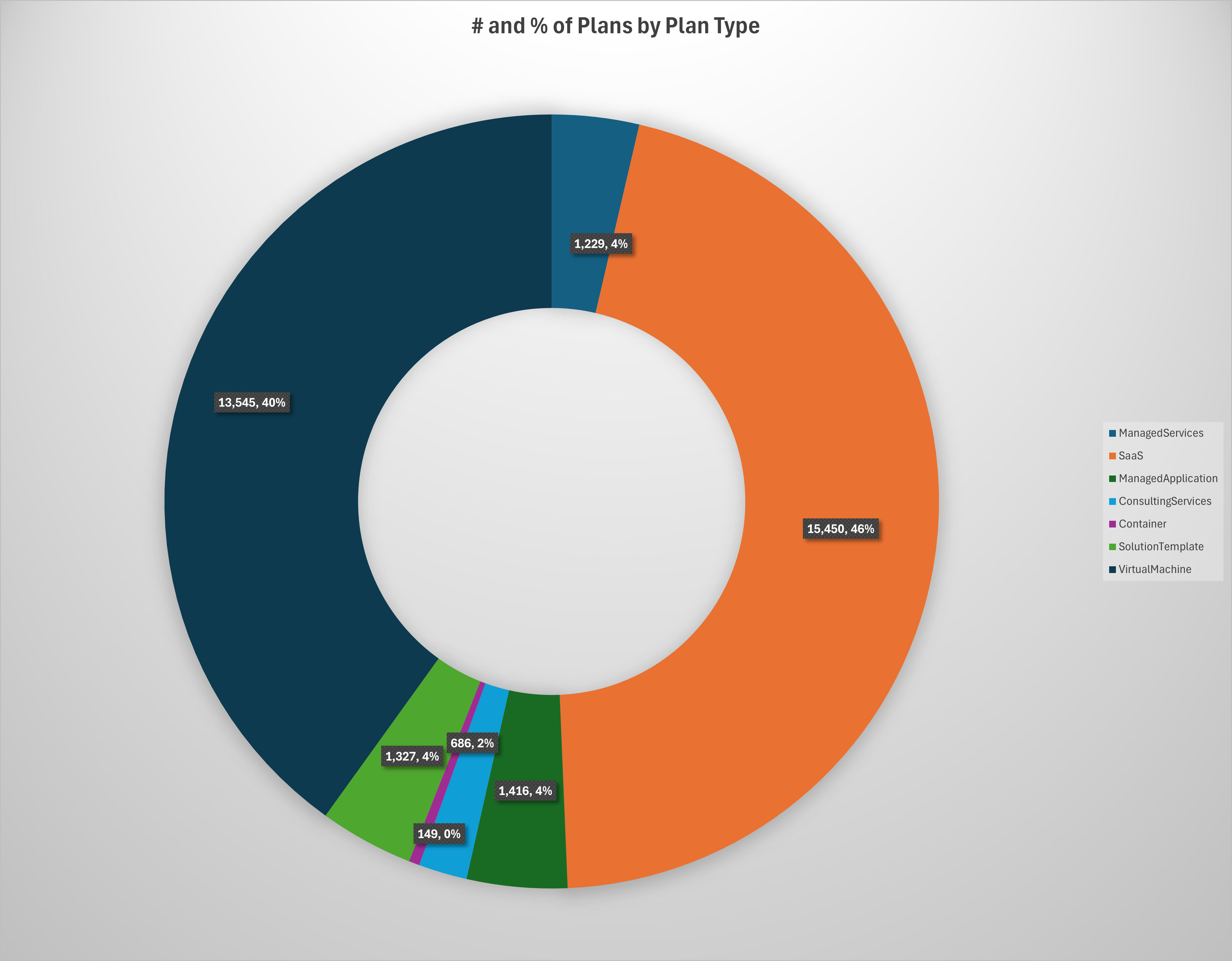 SaaS has the largest number of plans published in the Azure Marketplace, having leapfrogged Virtual Machines to the top spot at the end of August 2025. This is expected due to the significant effort Microsoft is investing in promoting SaaS on Azure.