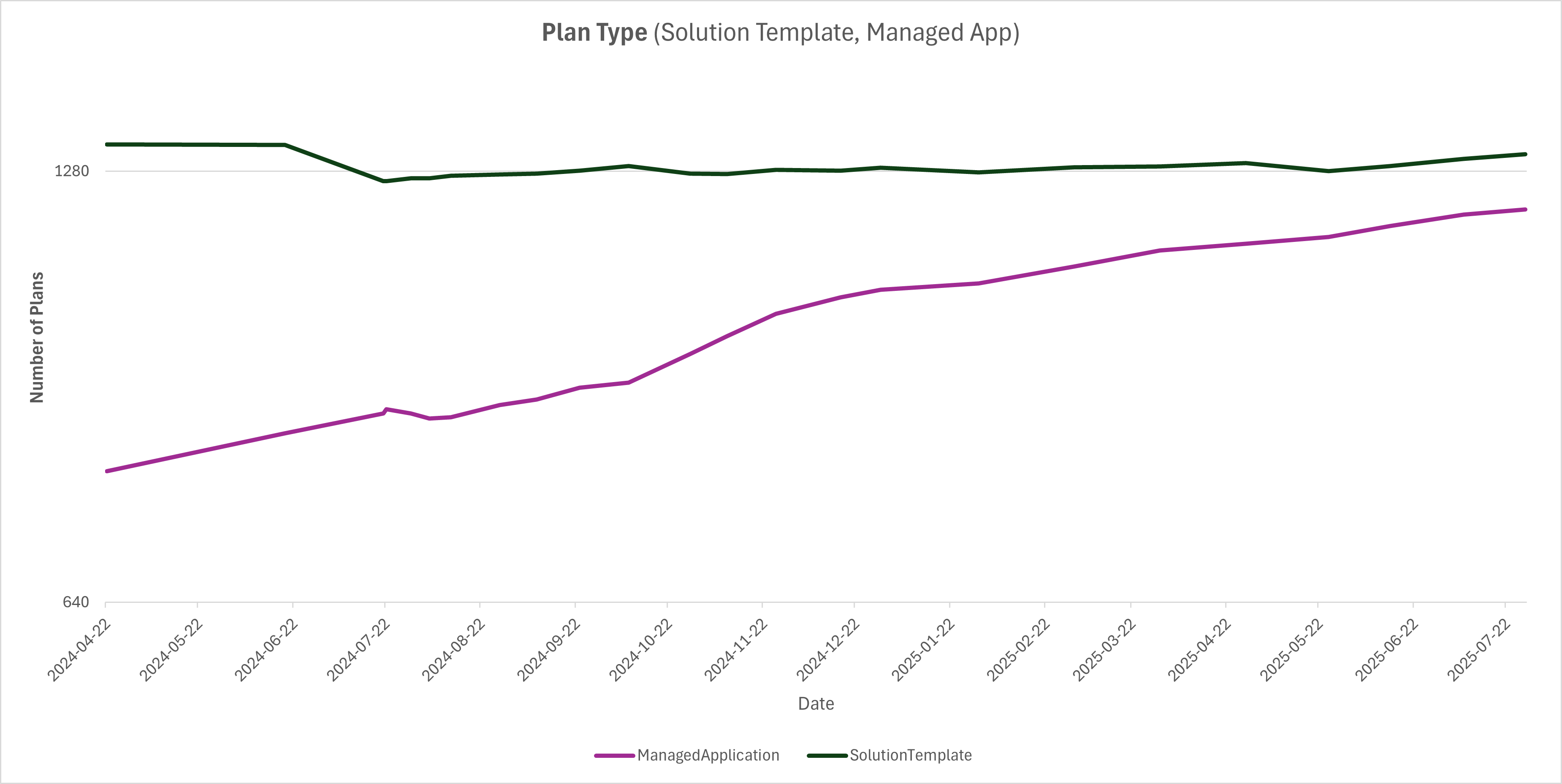 In terms of popularity, Solution Templates are still more popular than AMAs, but the rate of progress of AMAs is a lot better than Solution Templates, as most new AI solutions are choosing AMAs over Solution Templates for some or all of the reasons listed in the bullet points above. This can be seen in the following log-based chart: